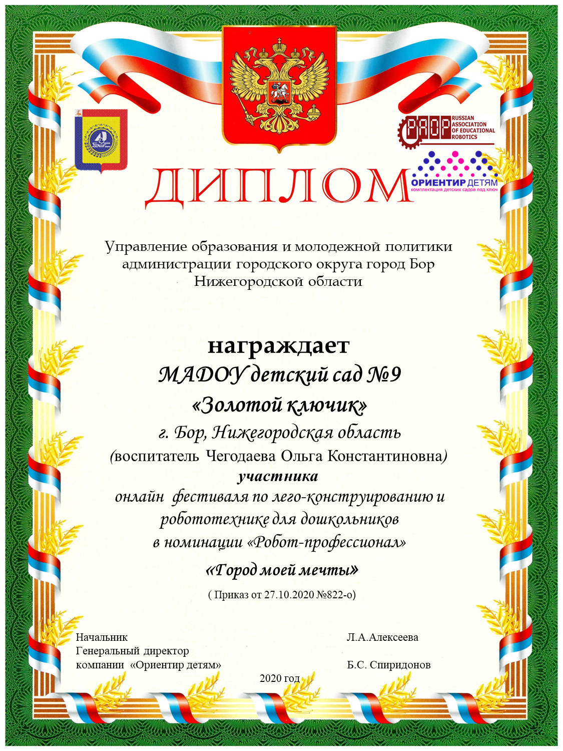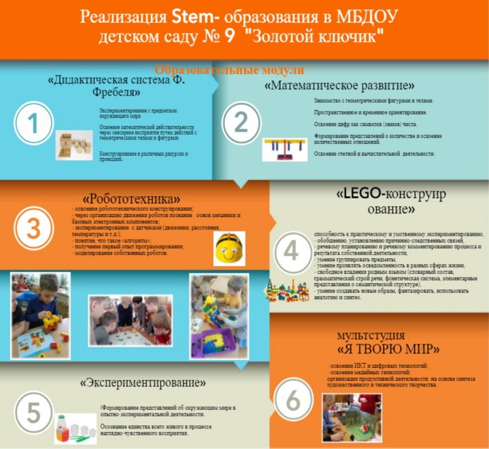МАДОУ детский сад 9 «Золотой ключик» с 05 июля 2017 года является инновационной площадкой ФГБНУ «Института изучения детства, семьи и воспитания Российской академии образования» по реализации программы STEM-образование детей дошкольного и младшего школьного возраста.